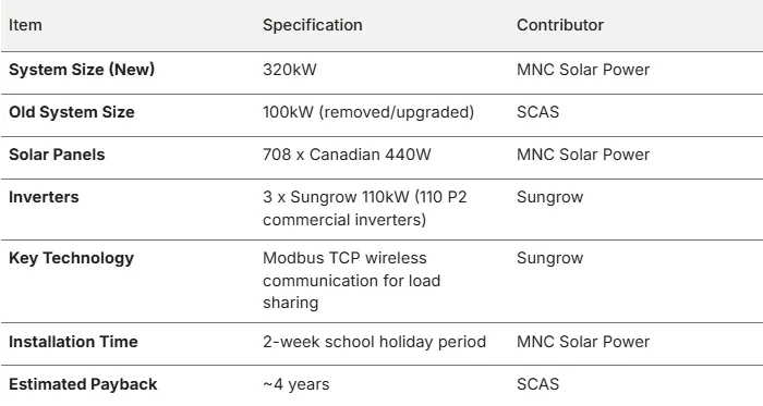 This case study highlights the motivation behind the upgrade( including estimated payback period), the technical breakthroughs of the Sungrow Inverter Installation, and the smooth collaboration between MNC Solar Power and Sungrow and the school.