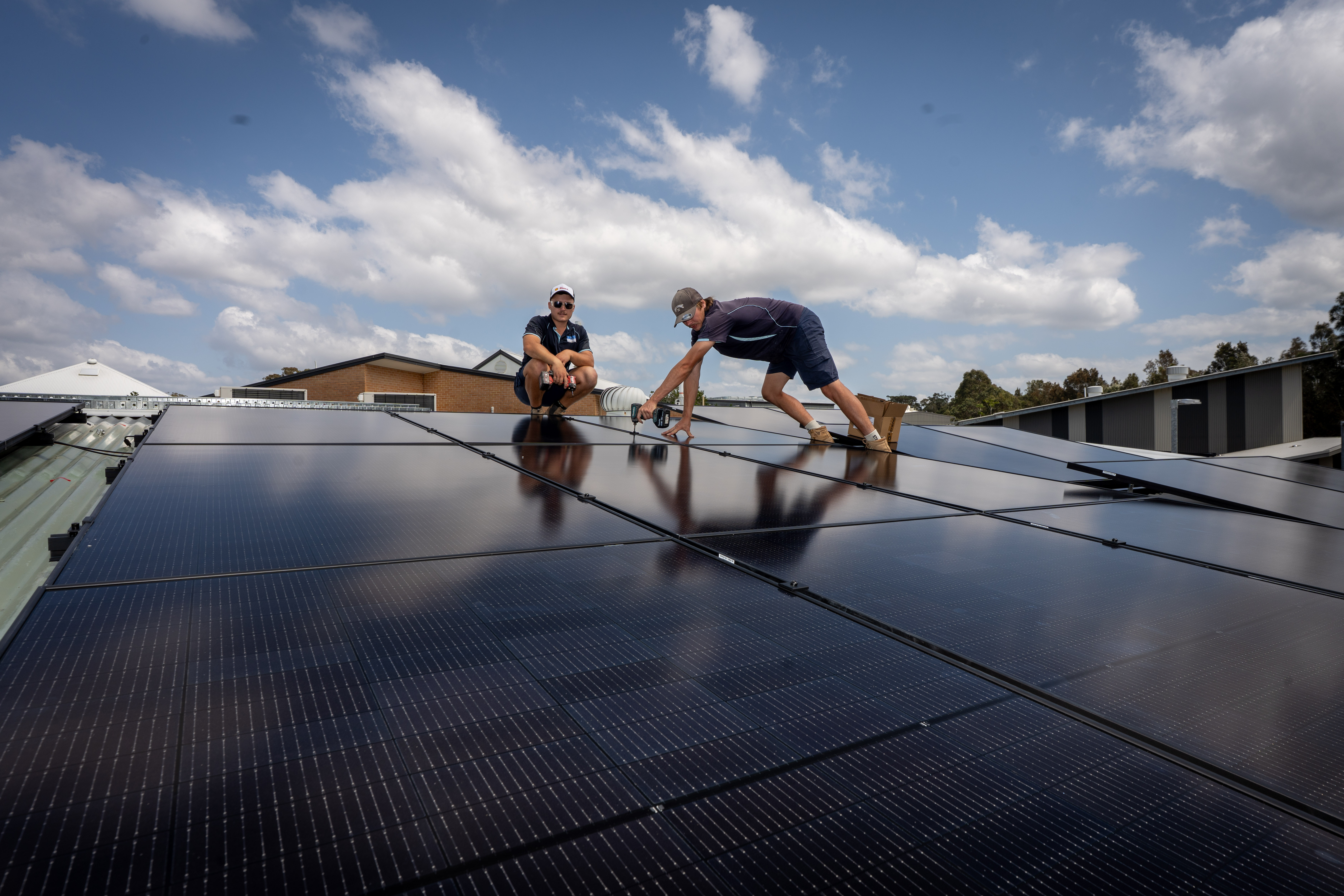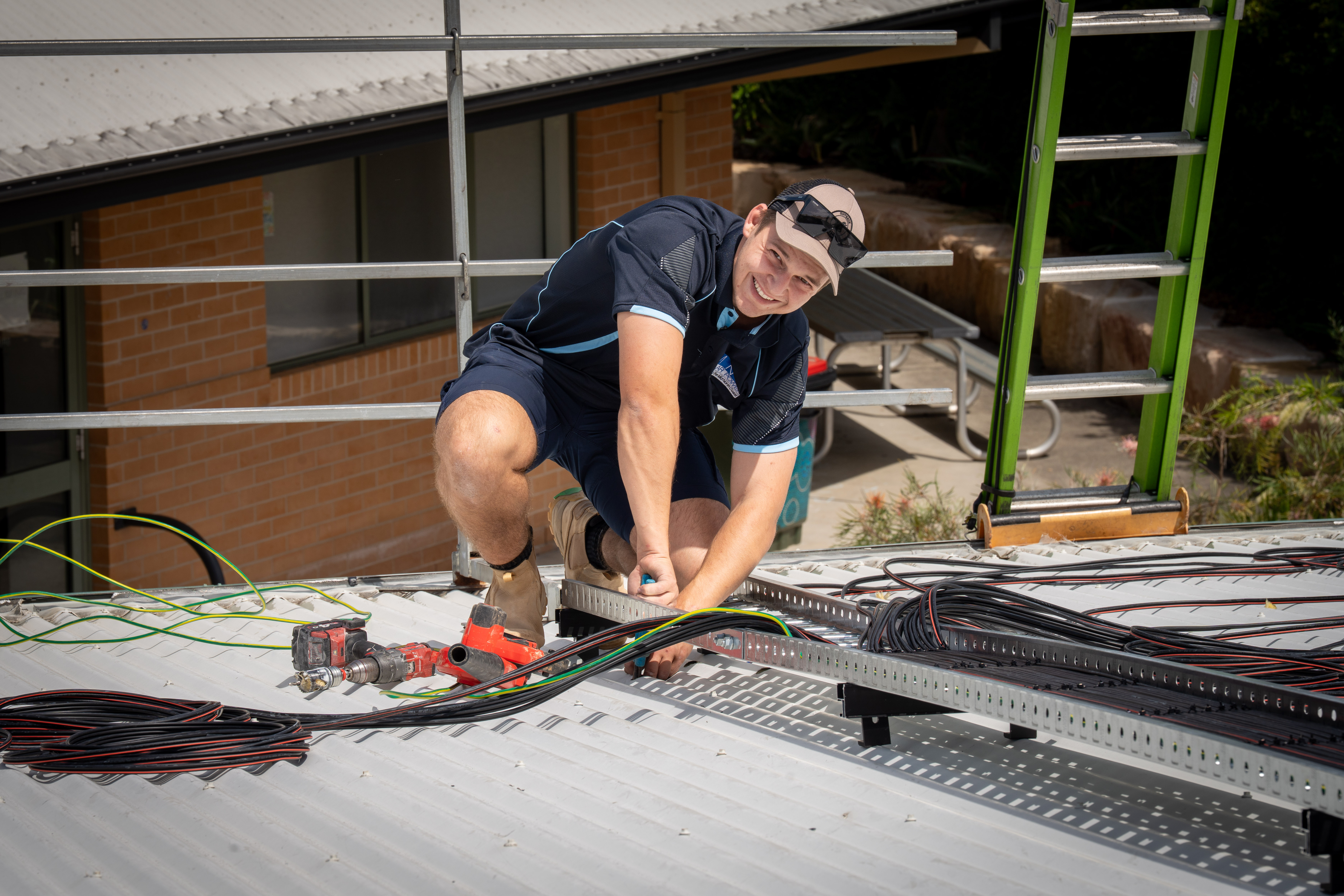 Dean Galvin describes the power distribution: "What it will do first ultimately is it will meet the demand of each distribution board that the inverter is connected to, and then the excess power will feed back to the main switchboard and then branch out from there to all the other buildings on site... The solar generated here will be evenly distributed throughout the school to meet their needs."